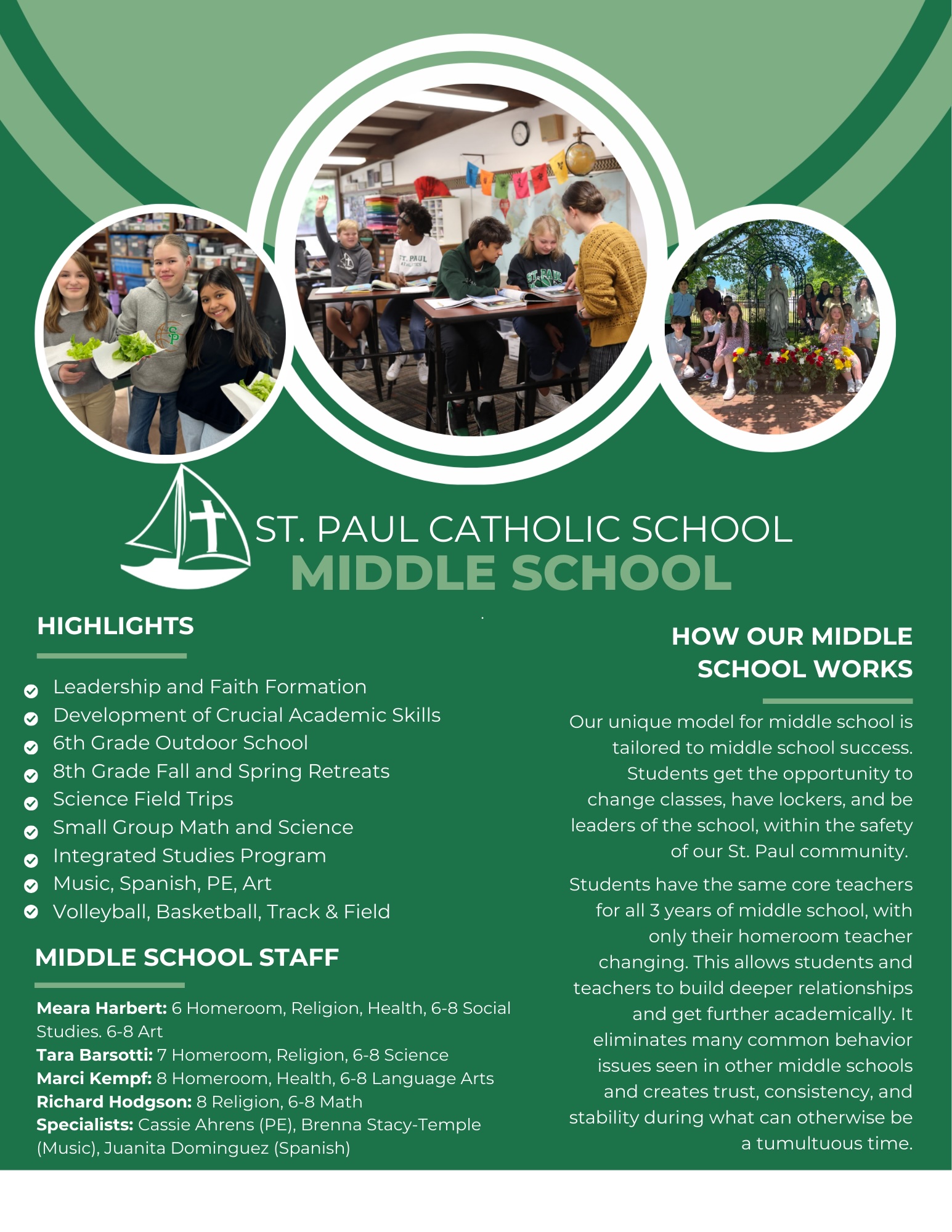 The St. Paul Middle School program believes in educating the whole child - spiritually, intellectually, socially and physically.